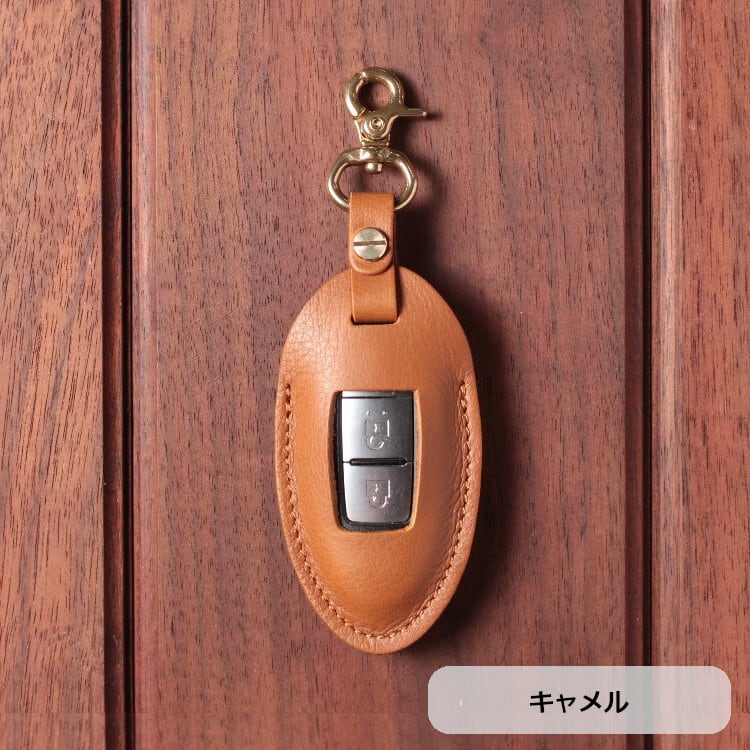主に日産、 その他三菱に採用されている小判型の 2 ボタンスマートキー(キーレスオペレーションキー)専用に設計された機能性と素材美を兼ね備えたレザーケース。