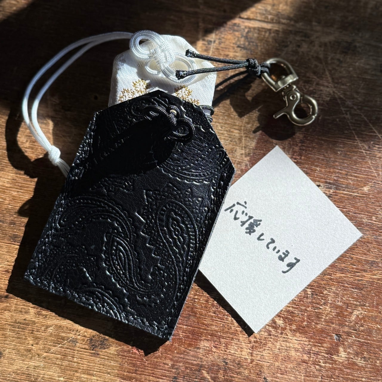 大切な御守りをやさしく包み込み、使うほどに革が育ち、時間とともに“自分だけの御守り”へと変化していきます。