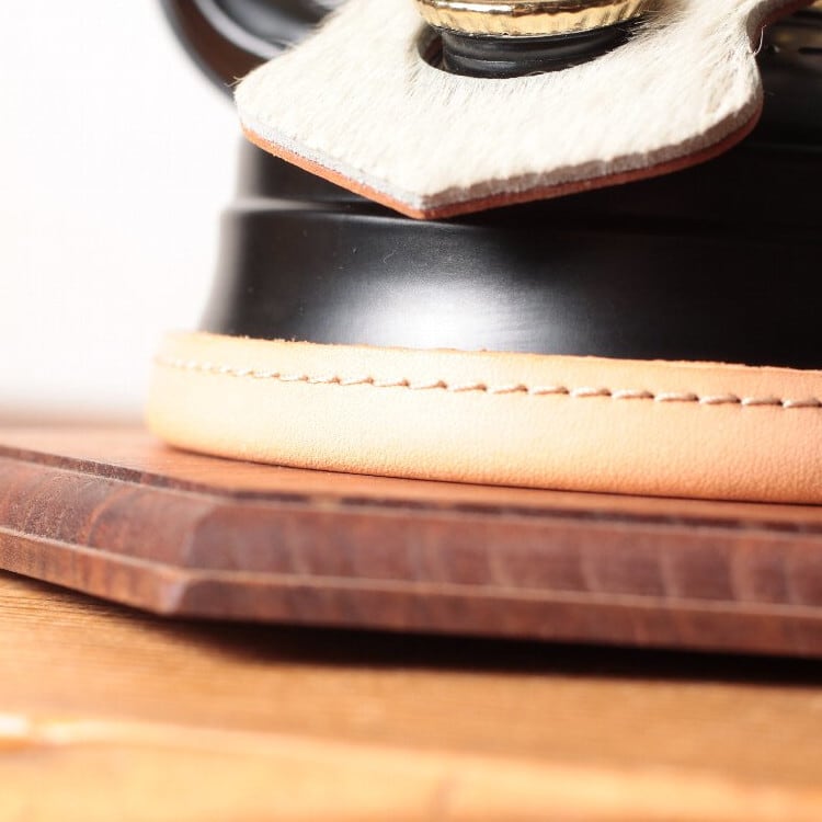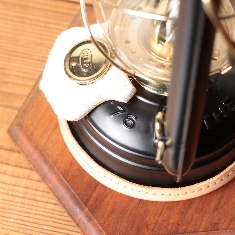 ランタンを直にテーブルへ置いた際に生じやすいスレやキズ、使用中のわずかな揺れによるガタつきを、天然レザーがやさしく受け止めます。